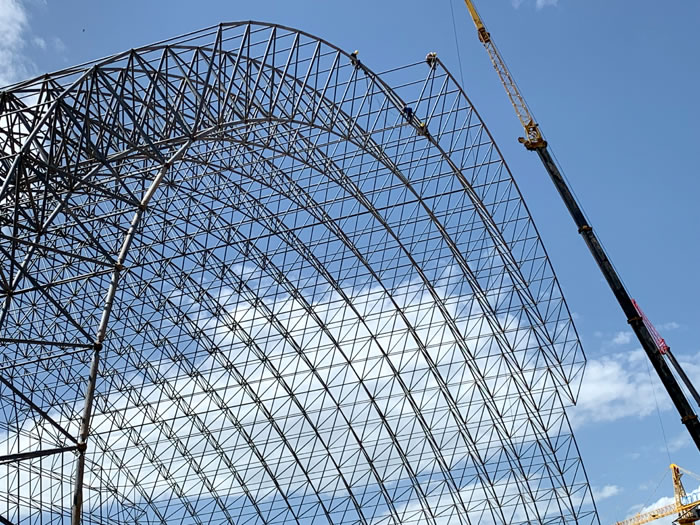 (2)网架加工前应对现场尺寸进行复测,确认无误后方可进行加工、安装;网架制作、运输、安装应遵守《空间网格结构技术规程》JGJ7-2010、《钢网架黄骅螺栓球节点》JG/T 10-2009、《钢网架黄骅螺栓球节点用高强度螺栓》 GB/T 16939-2016、《黄骅钢结构黄骅工程黄骅施工规范》 GB50755-2012、《黄骅钢结构黄骅工程黄骅施工质量验收标准》 GB50205-2020。